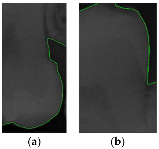 Image-annotation step preserves edges on both sides of the tooth: (a) less of the tooth edge is retained; (b) more of the tooth edge is retained.