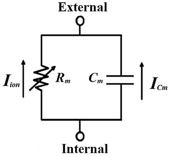 Equivalent circuit model of the myocardial membrane.
