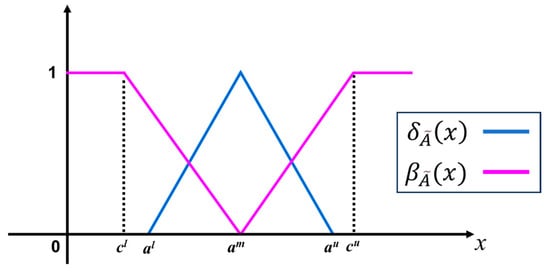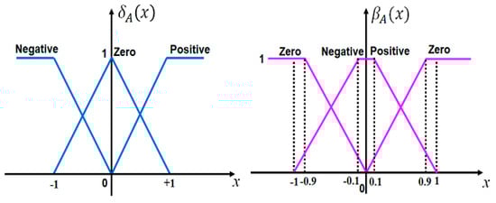 The uncertainty or hesitancy of the element to the IFS A is given in (7), where is the degree of uncertainty of x ∈ Y. The IFS A is reduced to a traditional fuzzy set if , .