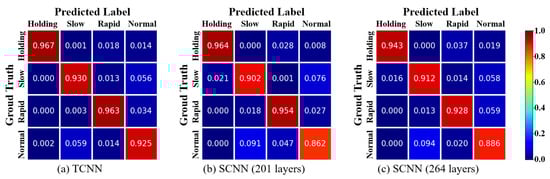 Confusion matrix from predicted results of the TCNN and SCNN (without autoencoder).