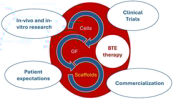 - The integration of materials and technologies: There is a pressing need to integrate diverse materials and technologies to develop scaffolds that effectively facilitate human bone healing. This includes the combination of different biopolymers, ceramics, and bioactive substances that should aim to replicate the intricate structure and functionality of natural bone;