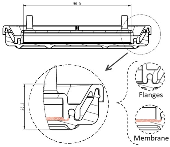 Membrane location once the cover and the vessel are adjusted, with dimensions in mm.