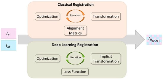 - Generative Adversarial Networks (GANs): Utilizing GANs, this method generates registered images directly with the deformation field, achieving accurate registration in real time. GANs’ ability to learn and generate realistic images makes them a cutting-edge solution in learning-based image registration [46].