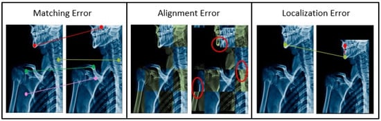 - Matching error: Measures the quality of key point detections by counting the number of false matches found between control point candidates.