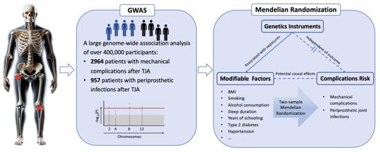 Chicago/Turabian StyleGuo, Sijia, Jiping Zhang, Huiwu Li, Cheng-Kung Cheng, and Jingwei Zhang. 2024. "Genetic and Modifiable Risk Factors for Postoperative Complications of Total Joint Arthroplasty: A Genome-Wide Association and Mendelian Randomization Study" Bioengineering 11, no. 8: 797. https://doi.org/10.3390/bioengineering11080797