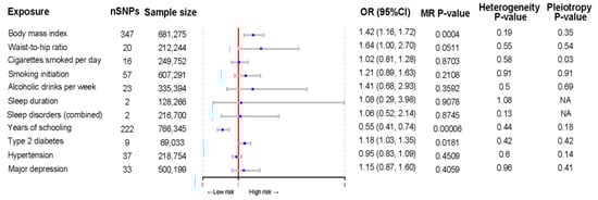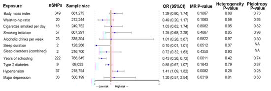 - Verbanck, M.; Chen, C.-Y.; Neale, B.; Do, R. Detection of Widespread Horizontal Pleiotropy in Causal Relationships Inferred from Mendelian Randomization between Complex Traits and Diseases. Nat. Genet. 2018, 50, 693–698. [Google Scholar] [CrossRef] [PubMed]