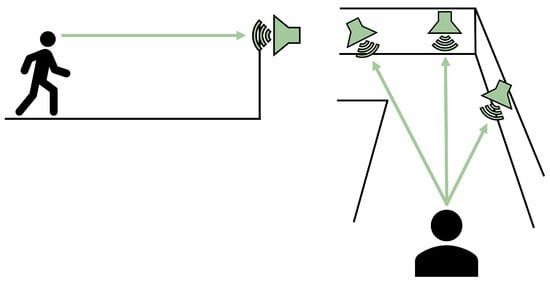 - Steffens, H.; Schutte, M.; Ewert, S.D. Acoustically driven orientation and navigation in enclosed spaces. J. Acoust. Soc. Am. 2022, 152, 1767–1782. [Google Scholar] [CrossRef] [PubMed]