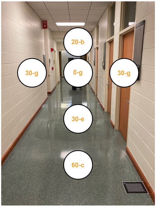 Testing was performed inside a large hallway of approximately 3 m × 20 m. This environment was selected because of its availability and size, which permitted the placement of the obstacles selected for this investigation while maintaining sufficient clearance for navigation within a controlled space. The study followed an adapted alternating treatment design (ATD). The decision to use an adapted ATD approach for this study was made primarily because the methodology is well-suited to answer the questions of interest with only a small number of participants. Limiting the number of participants also offered distinct logistical advantages for this preliminary study, both in terms of recruitment and the amount of time required to conduct the study.