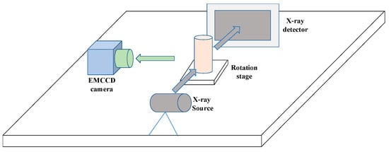 To further assess the performance of the proposed DeepCB-XLCT network using actual luminescence measurements, phantom experiments were conducted with a custom-developed CB-XLCT system, which mainly included a rotation stage, a micro-focus X-ray source (Oxford Instrument, Oxford, UK), an electron-multiplying charge-coupled device (EMCCD) camera (iXon DU-897, Andor, Oxford, UK) for capturing luminescence signals, and a flat-panel X-ray detector (2923, Dexela, London, UK) for capturing X-ray signals, as depicted in Figure 4. The X-ray source operated at a maximum voltage of 80 kV with a maximum power of 80 W.