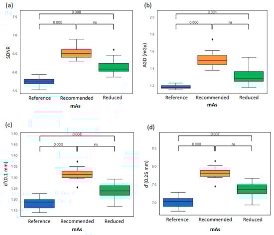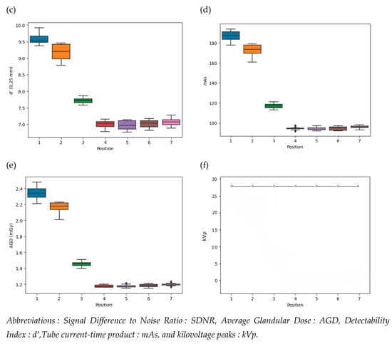 | Automatic Mode | SDNR | d’ (0.1 mm) | d’ (0.25 mm) | AGD (mGy) |