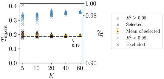 An objective injury threshold is determined through the convergence of combined relationships. The selected and the excluded are divided from the of all fitting curves with as the boundary. It can be seen that if , the mean of the selected fluctuates between 0.19 and 0.2. The error bar is the standard error.