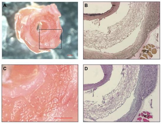 Patency was evaluated at both 1 week and 8 weeks in grafts consisting of the following groups: unloaded lyogel scaffolds (lyogel), Blank-MP-loaded lyogel constructs (Blank-MPs), and ArtMSC-loaded lyogel constructs (ArtMSCs). At 1 week or 8 weeks, the rats were anesthetized with isoflurane (2–5%) and then euthanized by a lethal intracardiac injection of heparin (40IU, McKesson Medical-Surgical, Livingston, MT, USA) and potassium chloride (2 mL/rat). Directly after being euthanized, a catheter (22GX1 in, Safelet IV catheter, Excel Inc., Seattle, WA, USA) was placed into the left ventricle and an angiogram (GE OEC 9800 Plus, G.E., Boston, MA, USA) was taken to assess TEVG patency. A contrast agent (ISOVUE, Bracco, Monroe Township, NJ, USA) was injected into the catheter to perform the angiogram. The TEVG was then explanted for histologic imaging.