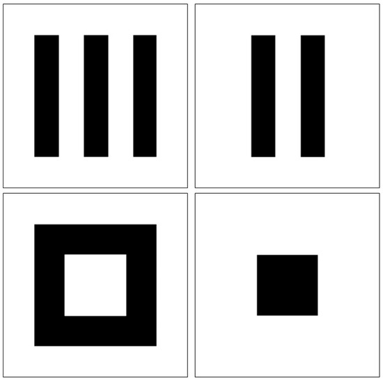 In the case of , detecting the true images in Figure 5 was challenging. In contrast, for , the true images were successfully identified. The best performance was observed for . This was mainly owing to the data structure of the simulation, where only the second component was associated with the outcome. However, the over-supervised () resulted in poor reconstruction of the true image. Other parameter-setting patterns () are presented in Table A1 and Table A2 of Appendix A, and the findings are consistent with the previous results.