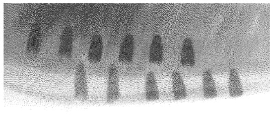 - Group B—A one-drill protocol was used, followed by the placement of the Quattrocone 30 implant (ø 4.0 mm new-generation starter drill bit → ø 4.1 mm implant). It should be noted that the advanced started drill bit does not fully correspond to the form and shape of the implant used in this study.