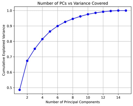 The collected features were scaled to standardize the data. Subsequently, Principal Component Analysis (PCA) was applied for automatic feature extraction. We retained 5 principal components (PCs), which accounted for approximately 85% of the total variance. Figure 6 illustrates the amount of variability covered by the number of principal components used.