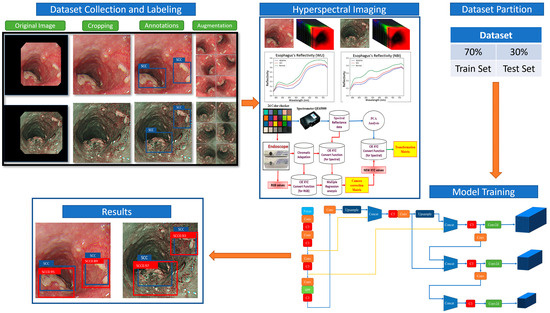 - Tsai, C.-L.; Mukundan, A.; Chung, C.-S.; Chen, Y.-H.; Wang, Y.-K.; Chen, T.-H.; Tseng, Y.-S.; Huang, C.-W.; Wu, I.-C.; Wang, H.-C. Hyperspectral Imaging Combined with Artificial Intelligence in the Early Detection of Esophageal Cancer. Cancers 2021, 13, 4593. [Google Scholar] [CrossRef] [PubMed]