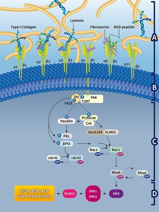 - Mao, L.; Wang, L.; Xu, J.; Zou, J. The role of integrin family in bone metabolism and tumor bone metastasis. Cell Death Discov. 2023, 9, 119. [Google Scholar] [CrossRef]