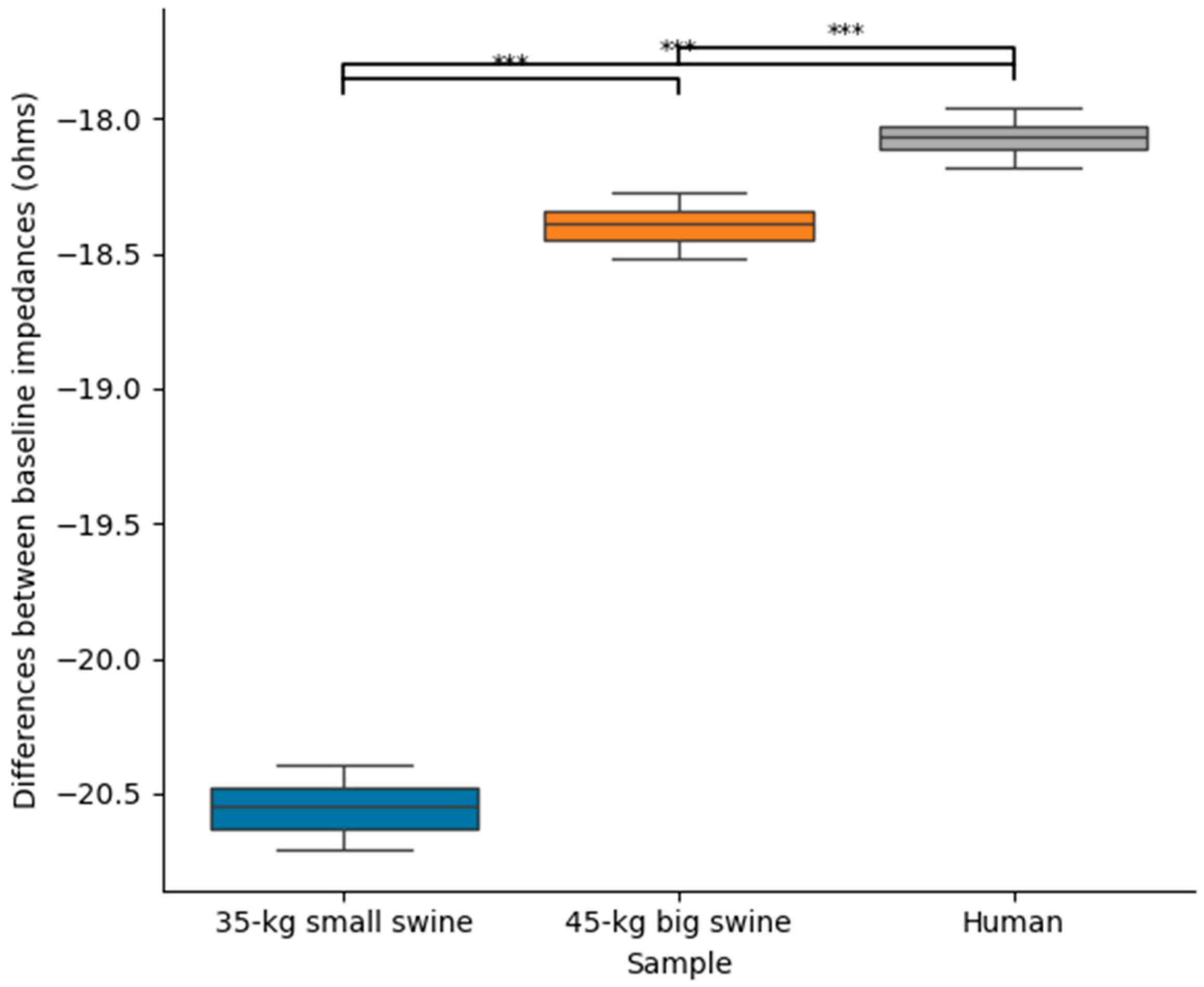 Small swine | 7.65 ± 0.32 | 5.48 ± 0.20 | 4.63 ± 0.27 | 8.71 ± 0.30 | 6.15 ± 0.19 | 5.28 ± 0.25 |