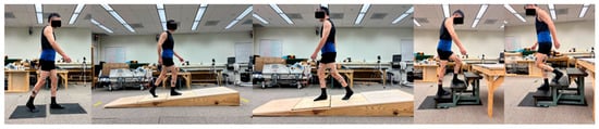 In addition to pain reduction, improvements in the ability to perform daily activities are essential for TKA patients and can significantly impact their quality of life. Although previous studies have found that TKA patients restore their knee range of motion during level walking within six months of the surgery [8], deficits in sagittal plane knee moment and angle have been reported compared to the control group [9,10,11]. Walking on a slope (ramp up and ramp down) is a challenging task compared to level walking in daily activities [12,13,14,15]. It is reported that TKA patients generate higher knee abduction moments, and greater knee extension moments and quadriceps muscle activities than level walking [16,17]. Stair ambulation (ascending and descending) is considered a high-demanding daily activity requiring greater knee flexions and synergy of low extremities [18,19]. Researchers reported that the post-operative TKA patients still had significant deficits in the front plane moment and sagittal plane angle compared to healthy controls during stair ambulation [11,20,21].