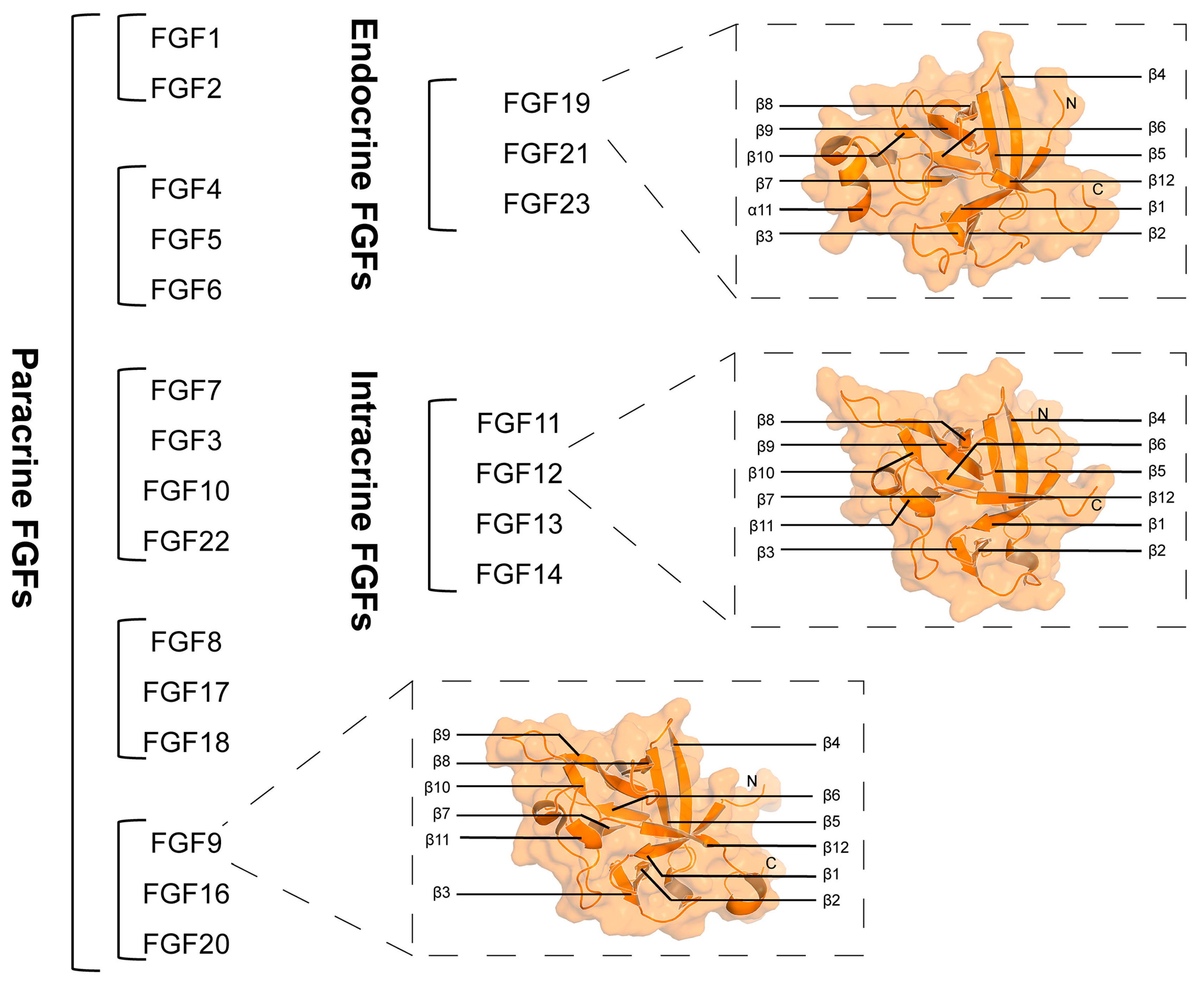 - Ornitz, D.M.; Itoh, N. New Developments in the Biology of Fibroblast Growth Factors. WIREs Mech. Dis. 2022, 14, e1549. [Google Scholar] [CrossRef]