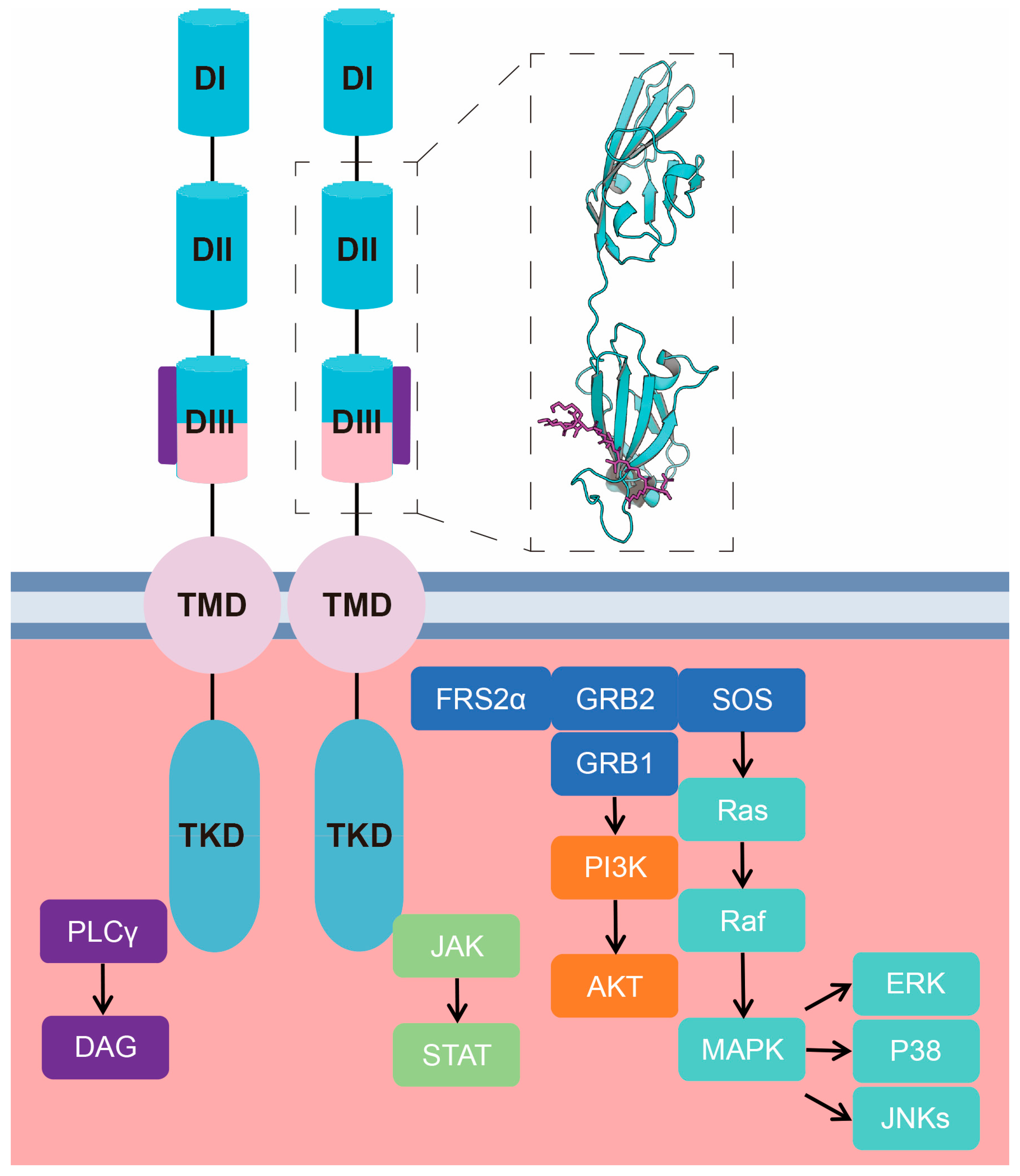 - Goetz, R.; Mohammadi, M. Exploring Mechanisms of FGF Signalling through the Lens of Structural Biology. Nat. Rev. Mol. Cell Biol. 2013, 14, 166–180. [Google Scholar] [CrossRef] [PubMed]