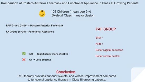 - Tabellion, M.; Lisson, J.A. Dentofacial and skeletal effects of two orthodontic maxillary protraction protocols: Bone anchors versus facemask. Head. Face Med. 2024, 20, 60. [Google Scholar] [CrossRef]