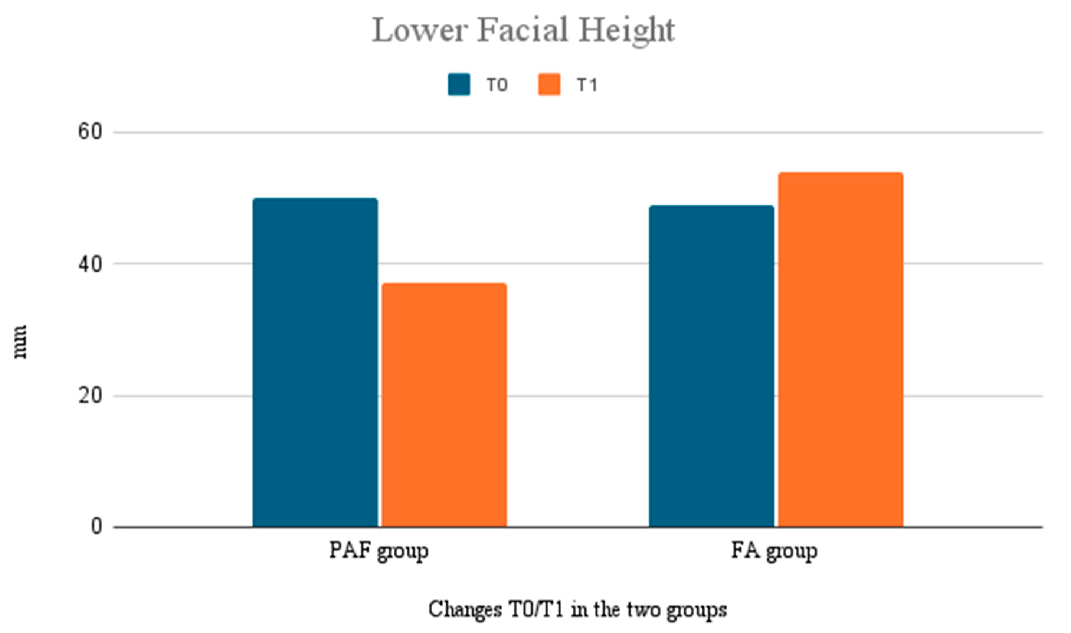 vertical facial height difference (mm) | −1.3 ± 0.7 | +0.5 ± 0.2 |