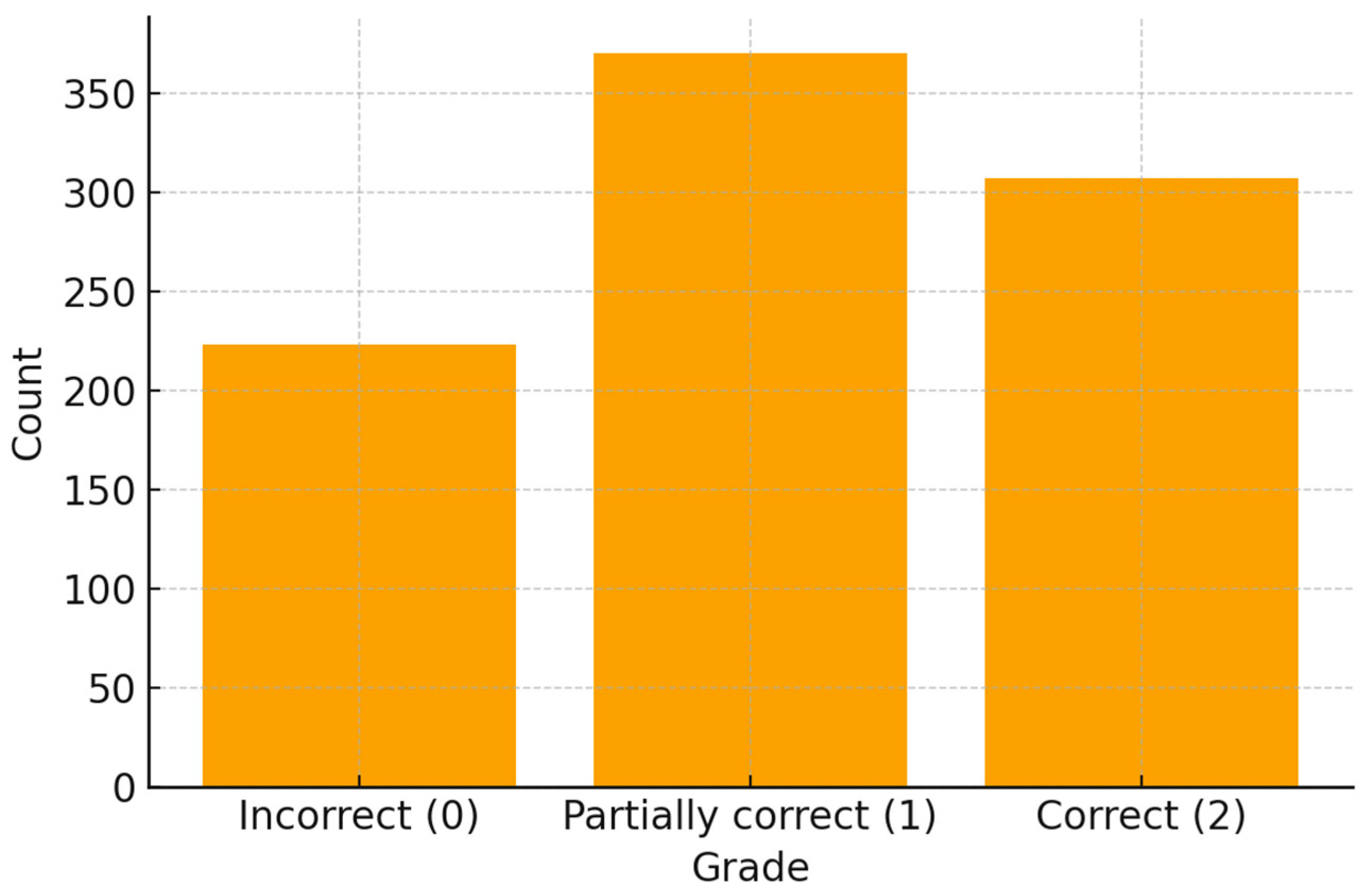 Partially correct or incomplete (1) | The answer shows some understanding or knowledge of the topic, but there are significant errors or missing elements. Although not completely incorrect, the answer is not sufficiently correct or complete to be considered certain or adequate. |