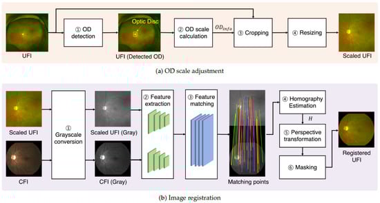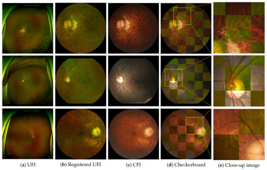- Li, Z.; Huang, F.; Zhang, J.; Dashtbozorg, B.; Abbasi-Sureshjani, S.; Sun, Y.; Long, X.; Yu, Q.; Romeny, B.t.H.; Tan, T. Multi-modal and multi-vendor retina image registration. Biomed. Opt. Express 2018, 9, 410–422. [Google Scholar] [CrossRef] [PubMed]