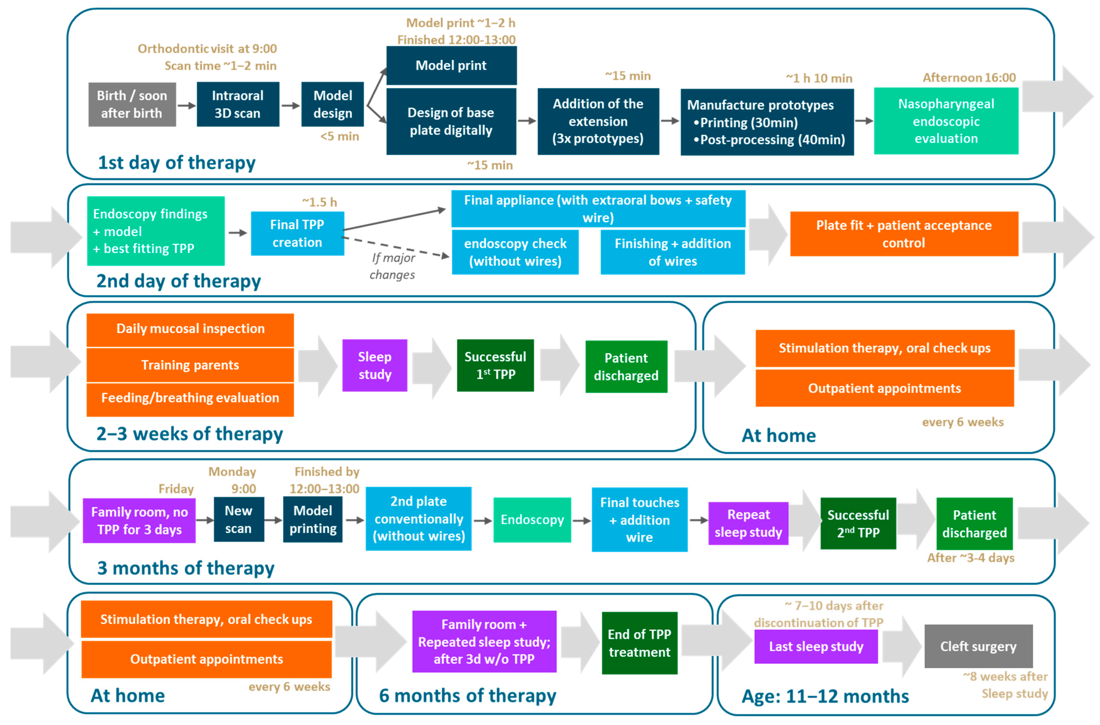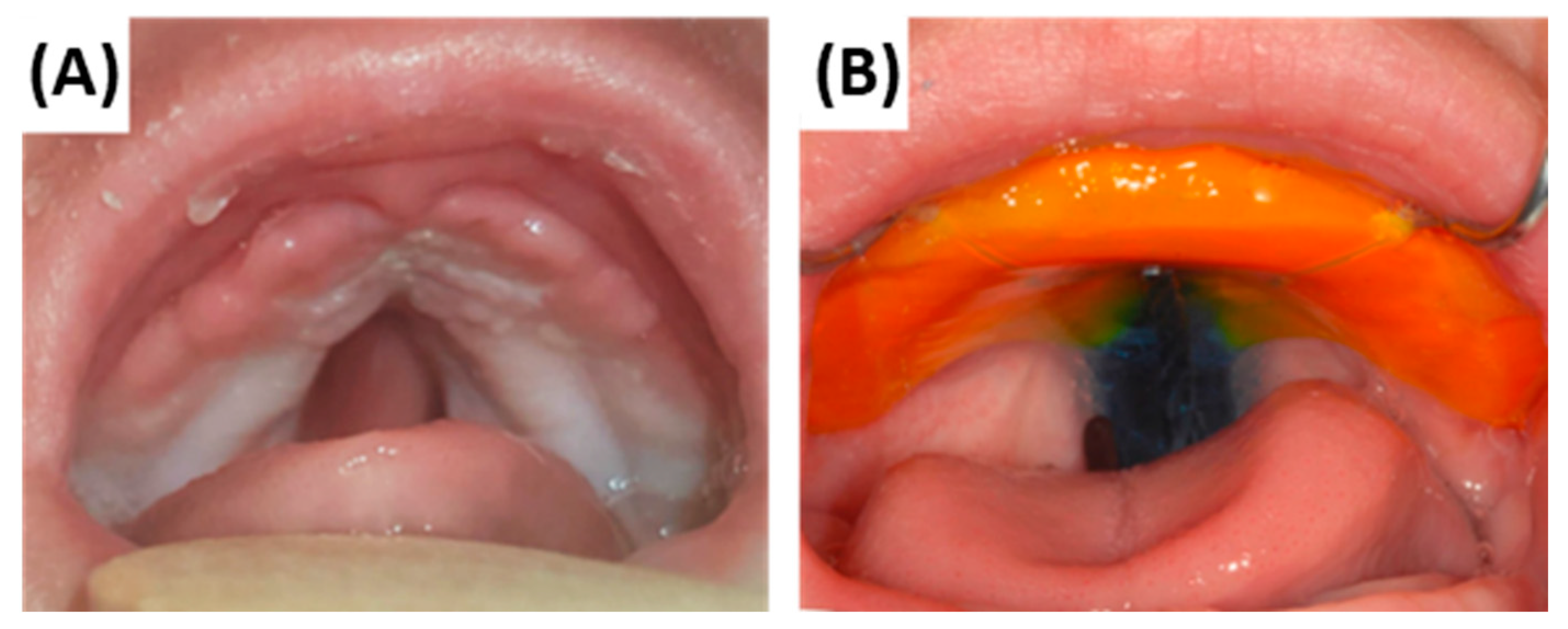 - Müller-Hagedorn, S.; Arand, J.; Scholz, T.; Poets, C.F.; Wiechers, C. An innovative method for manufacturing the Tuebingen palatal plate for infants with Robin sequence. BMC Pediatr. 2020, 20, 103. [Google Scholar] [CrossRef]