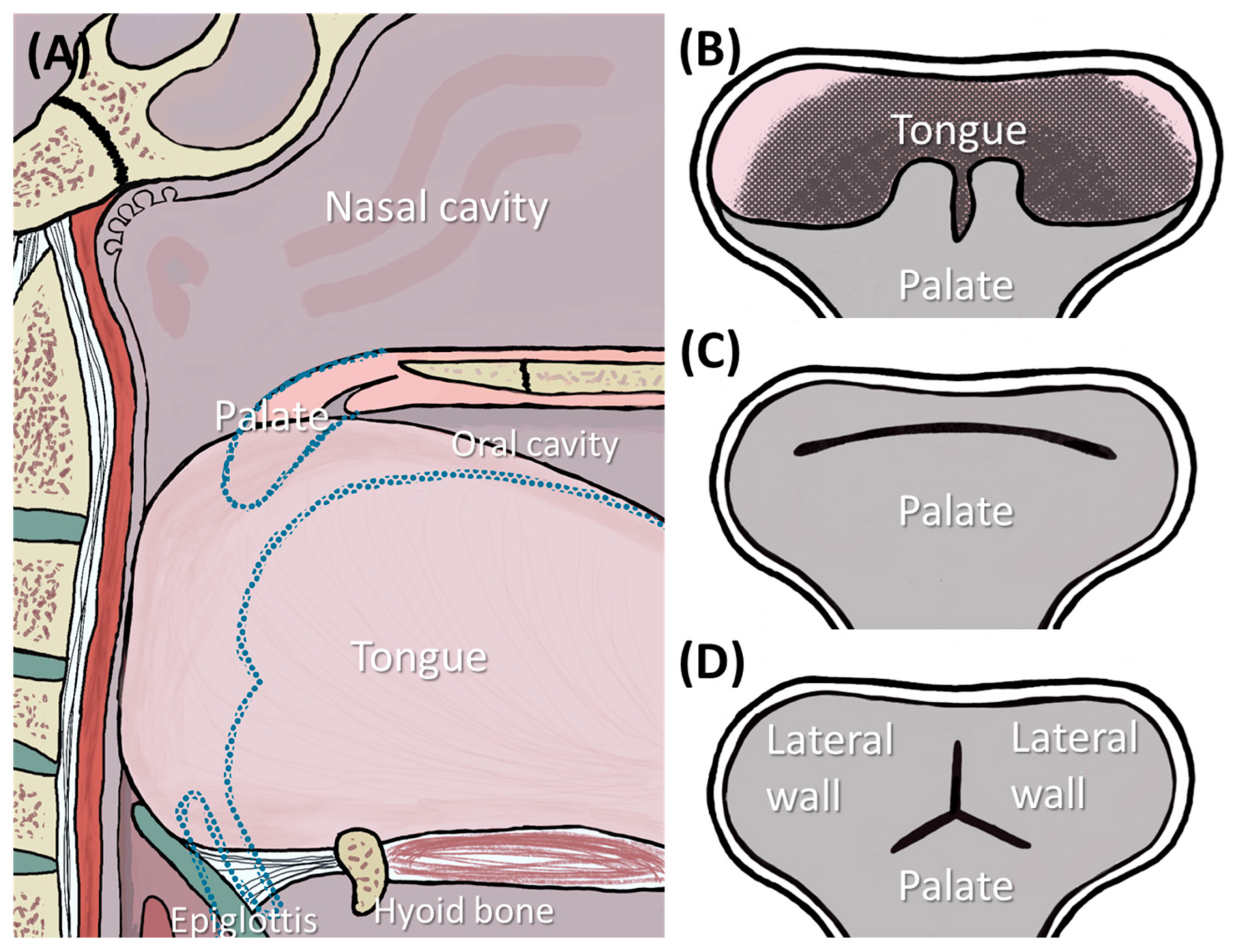 - Schmidt, G.; Hirschfelder, A.; Heiland, M.; Matuschek, C. Customized pre-epiglottic baton plate—A practical guide for successful, patient-specific, noninvasive treatment of neonates with Robin Sequence. Cleft Palate-Craniofacial J. 2021, 58, 1063–1069. [Google Scholar] [CrossRef]