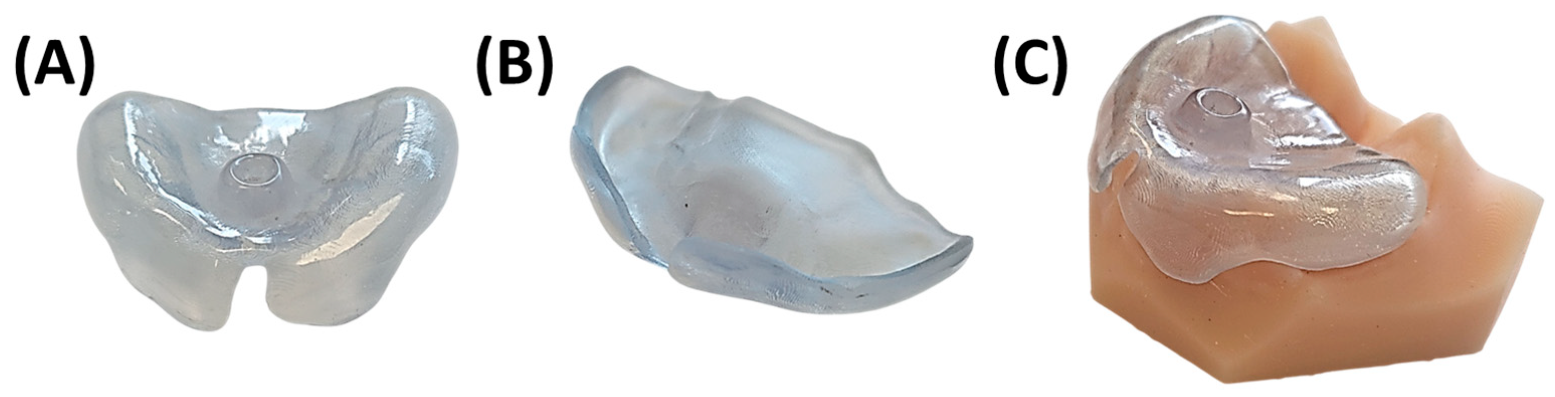- Weismann, C.; Xepapadeas, A.B.; Bockstedte, M.; Koos, B.; Krimmel, M.; Poets, C.F.; Aretxabaleta, M. Complete Digital Workflow for Manufacturing Presurgical Orthodontic Palatal Plates in Newborns and Infants with Cleft Lip and/or Palate. J. Funct. Biomater. 2024, 15, 301. [Google Scholar] [CrossRef]