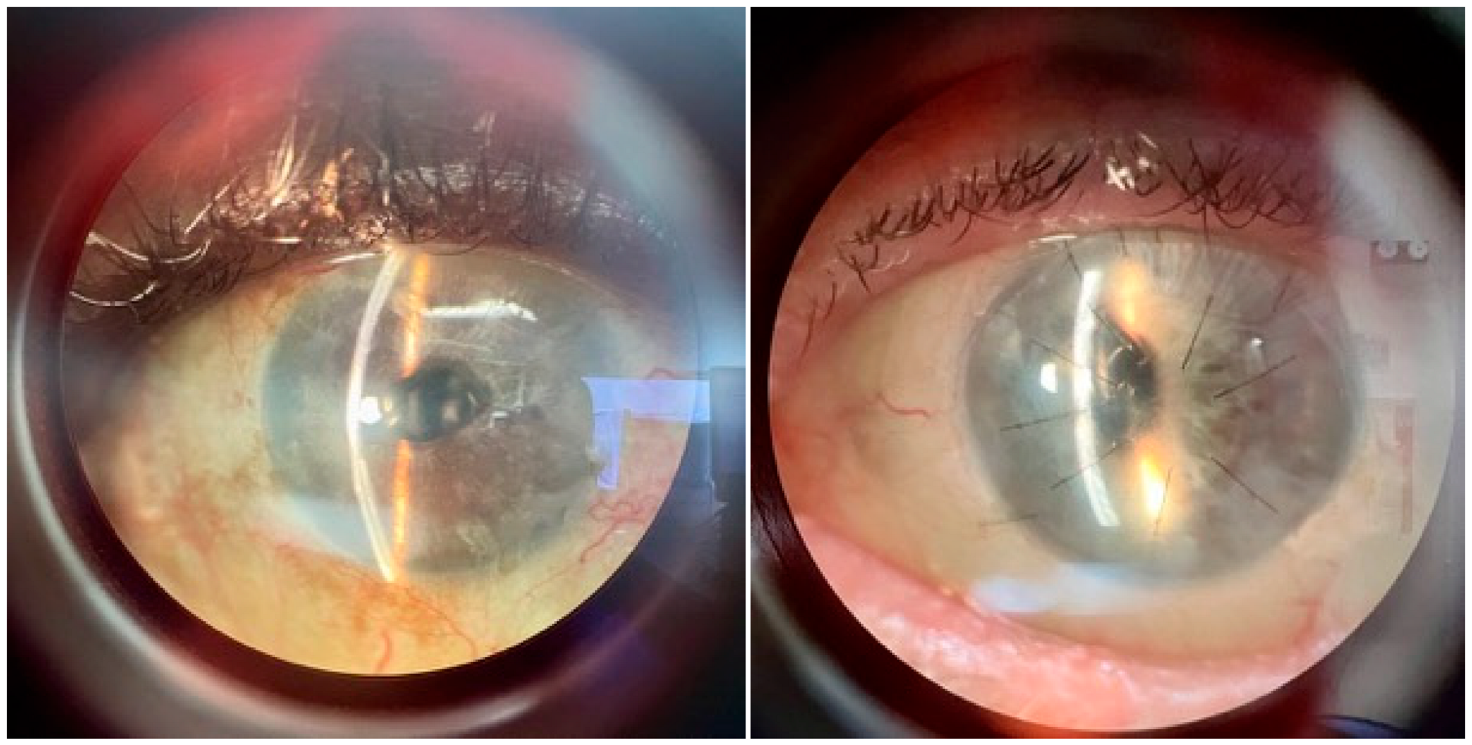 - Cesaro, B.; Ferrara, M.; Morescalchi, F.; Bergamaschi, N.; Gandolfo, F.; Semeraro, F.; Romano, V. Atypical Endophthalmitis Following Artificial Corneal Endothelial Implantation. Cornea 2025. [Google Scholar] [CrossRef]