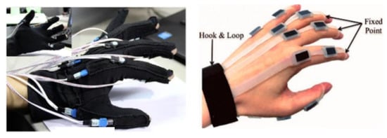 - Ahmed, M.A.; Bahaa, B.; Zaidan, A.; Salih, M.; Lakulu, M.M. A Review on Systems-Based Sensory Gloves for Sign Language Recognition State of the Art between 2007 and 2017. Sensors 2018, 18, 2208. [Google Scholar] [CrossRef]