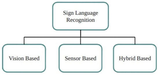 There exist two methods for the detection of sign language: vision-based and sensor-based [,]. Without the need for sensors or gloves, a vision-based system employs a camera to record hand motions as either static or dynamic images. The skin tone, lighting, background fluctuations, camera quality, and settings provide obstacles for this method, which is perfect for the routine lives of the mute and deaf [].