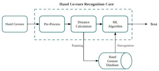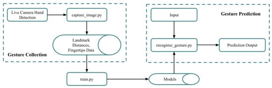 CV programming of Python (version 3.12.6) is a famous tool for merging ML and computer vision, especially for hand signal detection. In both domains, it makes the development of scalable and effective algorithms possible. A well-liked computer vision toolkit called OpenCV offers several features, such as object recognition, feature detection, and picture processing [,]. OpenCV uses feature extraction and computer vision techniques like edge and corner detection to identify hand signals. A variety of tools for classification, regression, and clustering in machine learning tasks are offered by Scikit-learn. Deep neural networks, including those for hand movement applications, can be created and optimised with TensorFlow’s comprehensive array of deep learning tools [,].