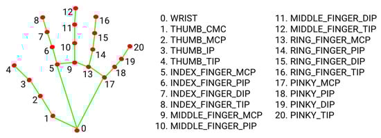 Landmark detection is a crucial aspect of computer vision since it facilitates the recognition of hand gestures by pinpointing precise and informative spots on the hand. Traditional techniques like edge detection, the HOG, and the SIFT have been used to do this. But deep learning has made great strides, and deep learning-based algorithms are now preferred because of their improved capacity to decipher complicated images. One of the best examples of this trend is OpenPose, which effectively extracts landmarks from the hands, body, and face in the input image by using a multi-stage Convolutional Neural Network (CNN) [,,].