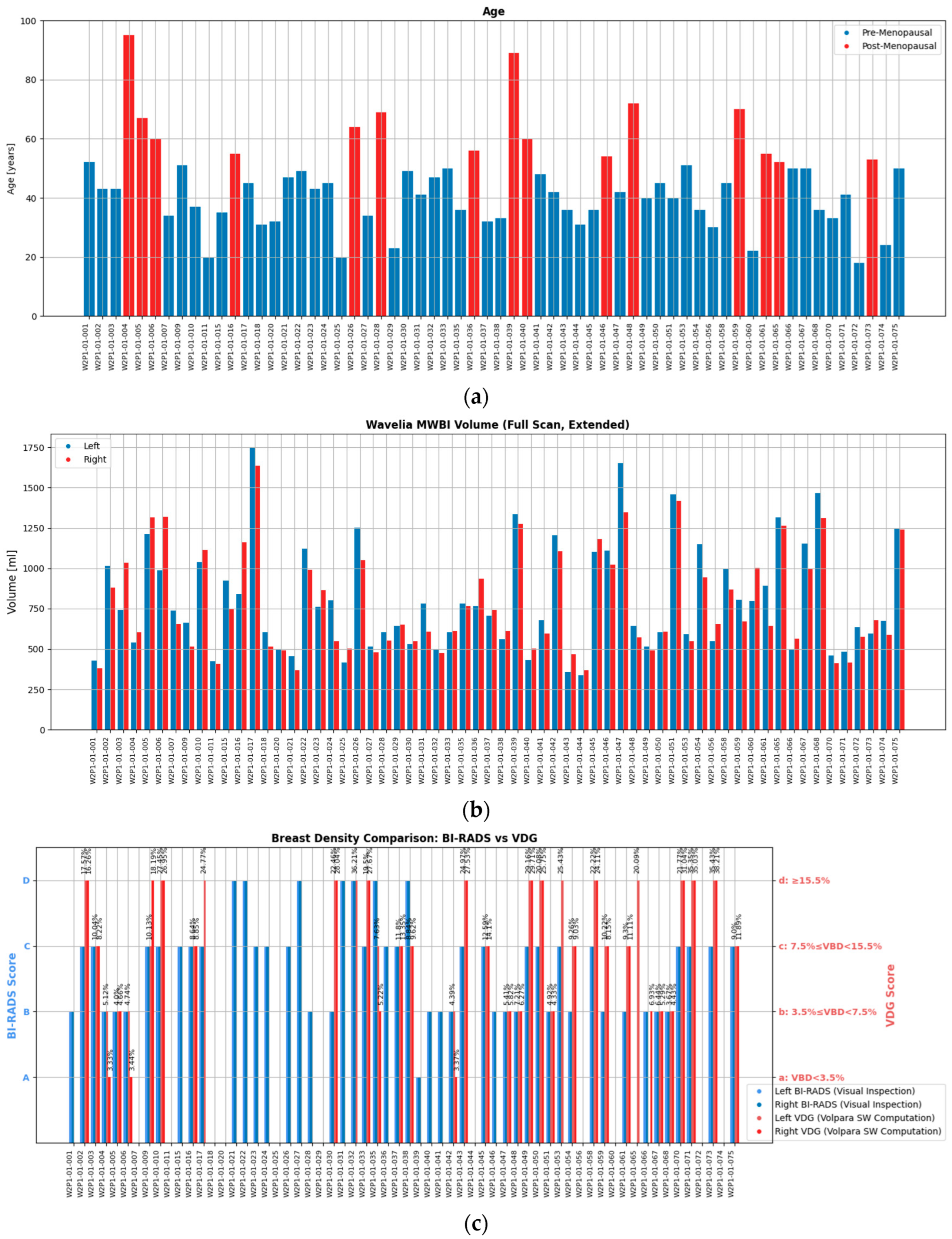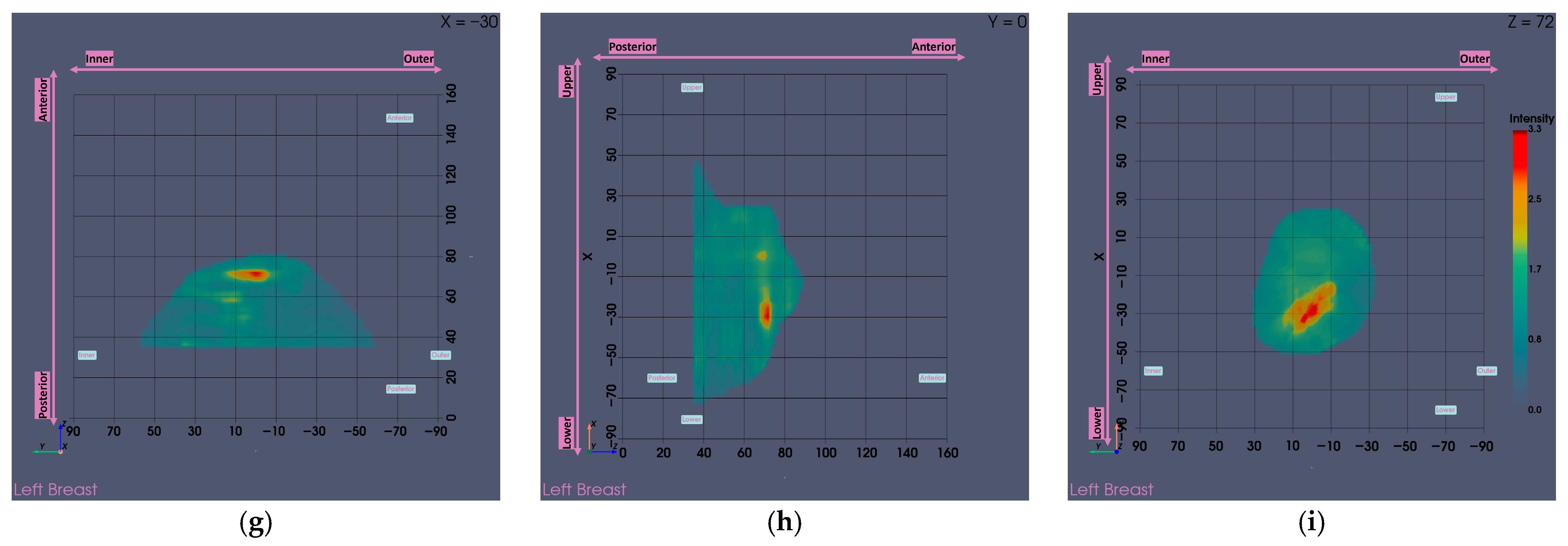 - Fasoula, A.; Papatrechas, G.; Arvanitis, P.; Duchesne, L.; Cano, J.D.G.; Donnell, J.O.; Elwahab, S.A.; Kerin, M. Wavelia Microwave Breast Imaging Phase#2 clinical investigation: Methodological Evolutions and Multidimensional Radiomics Analysis towards controlled Specificity. Cancers 2025, 17, 2973. [Google Scholar] [CrossRef]