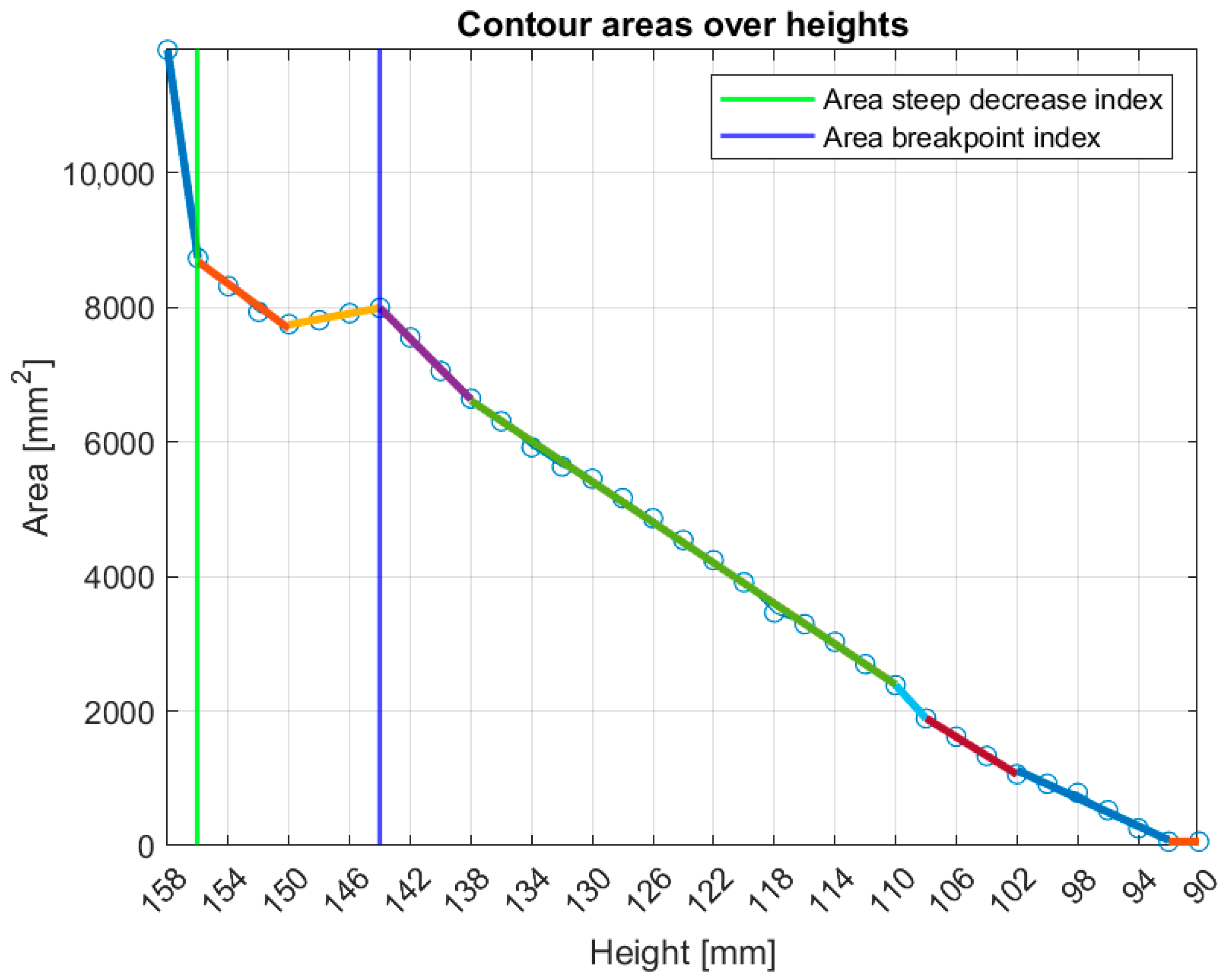 - Select final breakpoint: Accept the breakpoint only if it lies within the first third of the areas vector, ensuring it corresponds to the near-chest wall region.