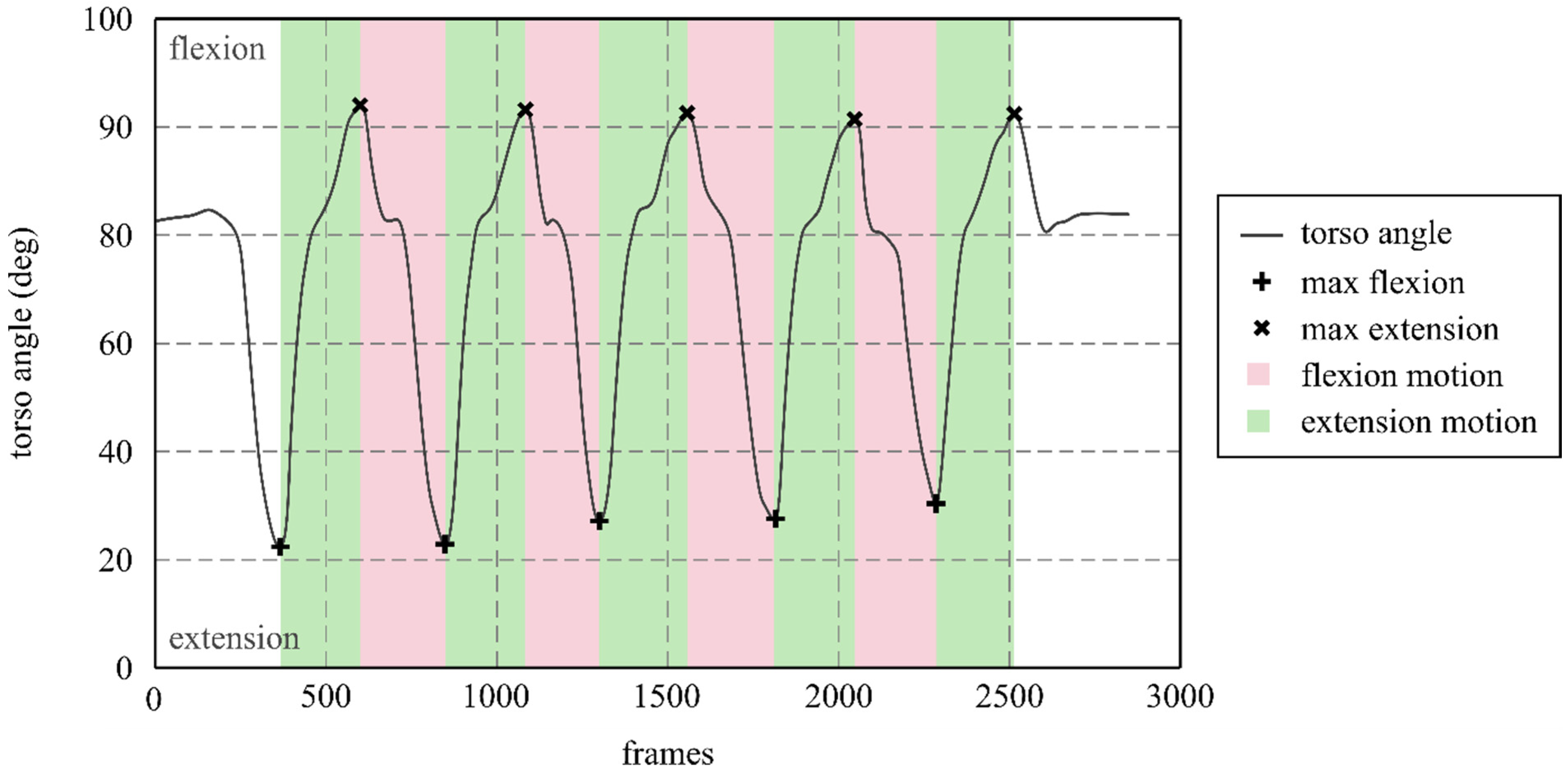 - Beaudette, S.M.; Zwambag, D.P.; Graham, R.B.; Brown, S.H.M. Discriminating spatiotemporal movement strategies during spine flexion-extension in healthy individuals. Spine J. 2019, 19, 1264–1275. [Google Scholar] [CrossRef]