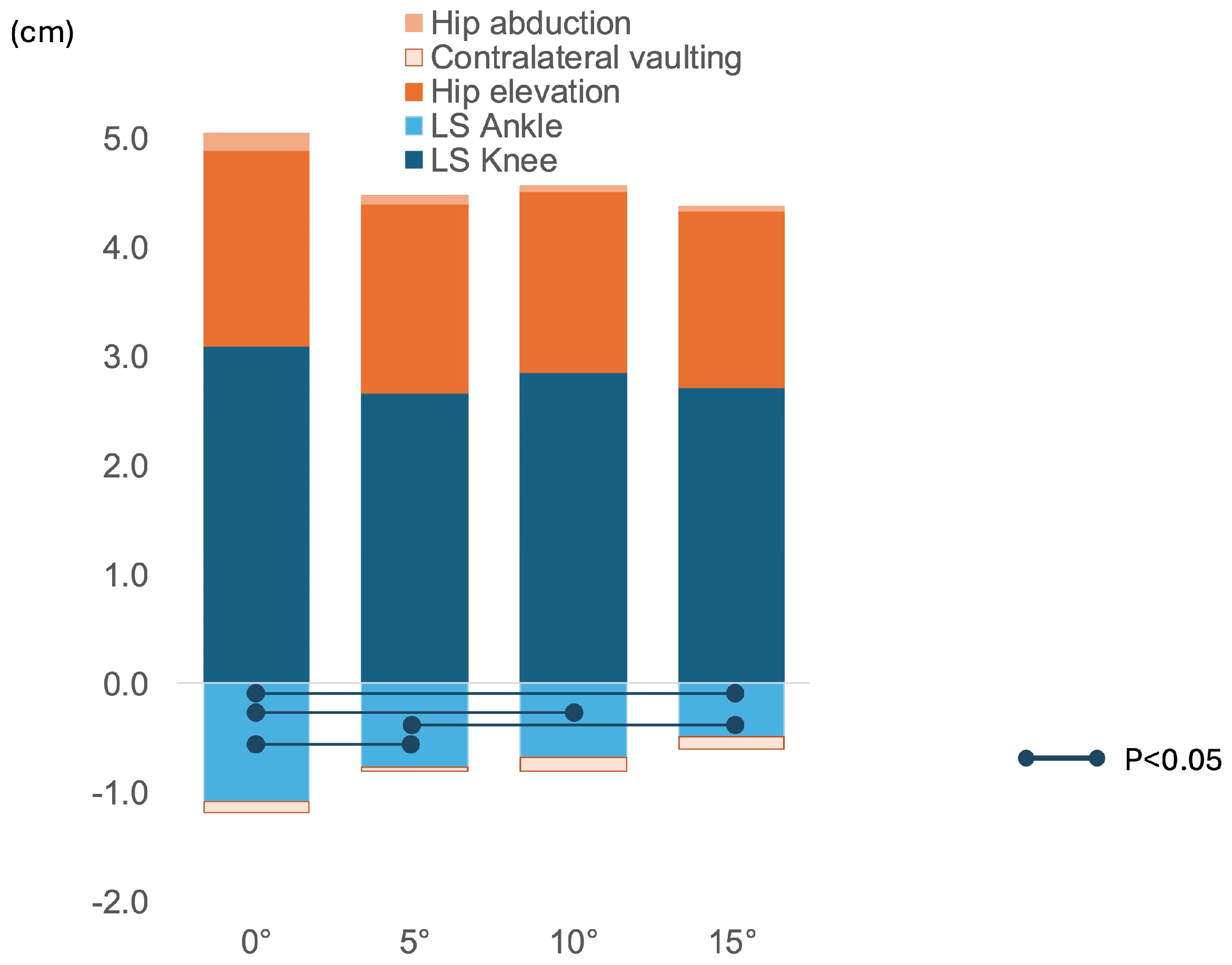 Compensatory hip elevation, cm | 1.8 ± 1.7 | 1.7 ± 1.8 | 1.7 ± 1.8 | 1.6 ± 1.8 | 0.025 |