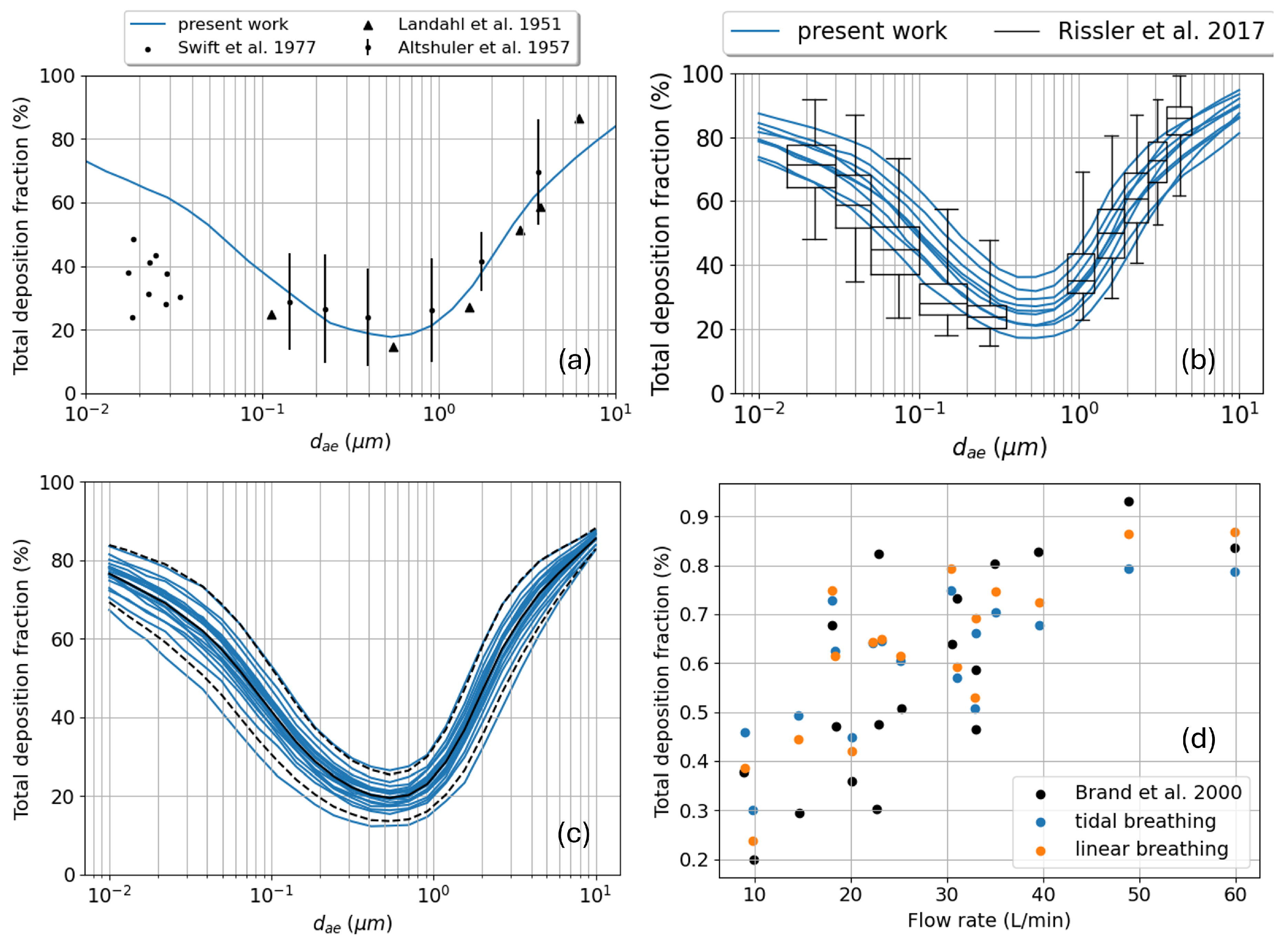 - Rissler, J.; Sjögren, M.P.; Linell, J.; Hurtig, A.L.; Wollmer, P.; Löndahl, J. An experimental study on lung deposition of inhaled 2 μm particles in relation to lung characteristics and deposition models. Part. Fibre Toxicol. 2023, 20, 40. [Google Scholar] [CrossRef]