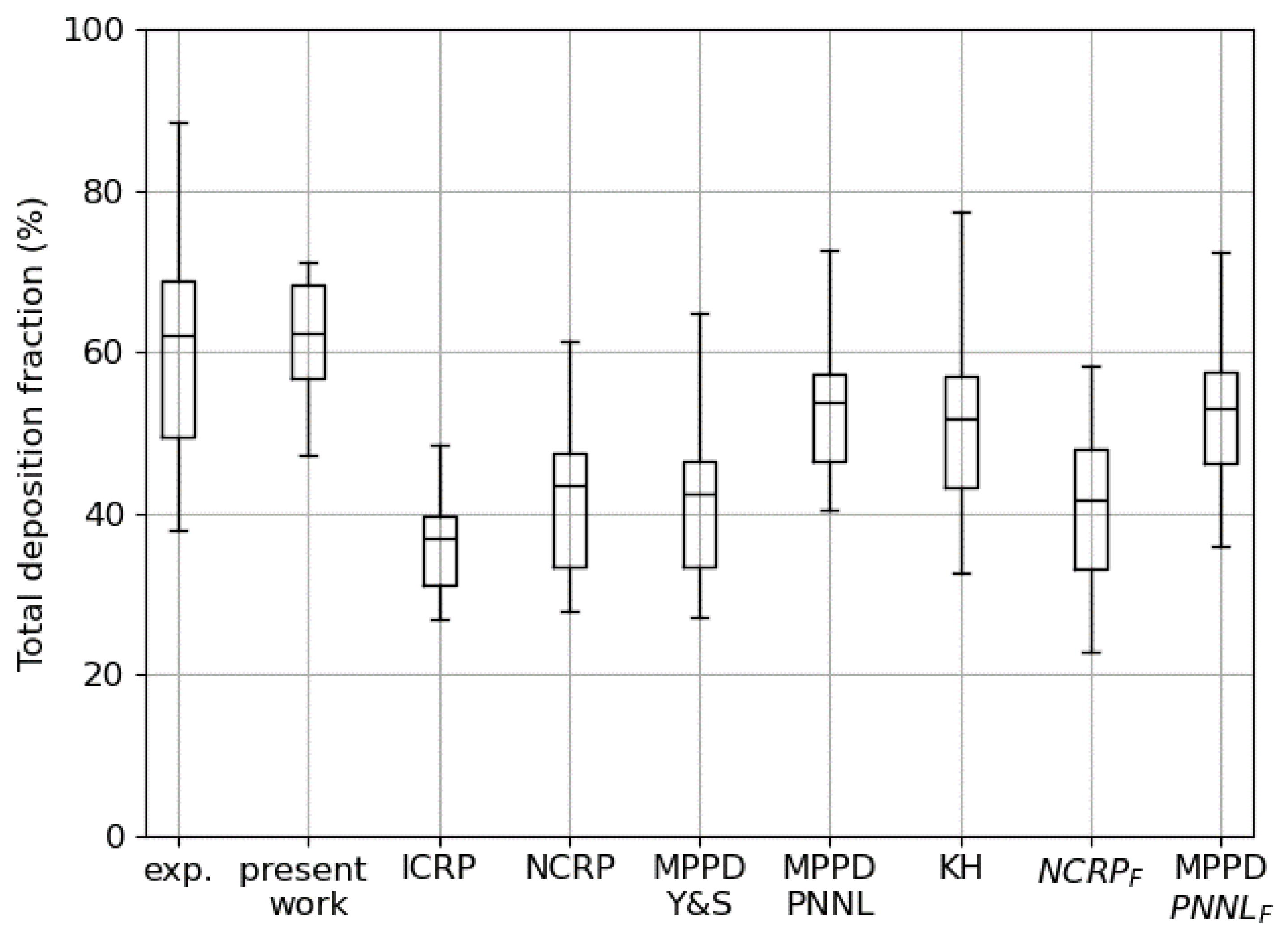 - Hofmann, W. Regional Deposition: Deposition Models. J. Aerosol Med. Pulm. Drug Deliv. 2020, 33, 239–248. [Google Scholar] [CrossRef]
