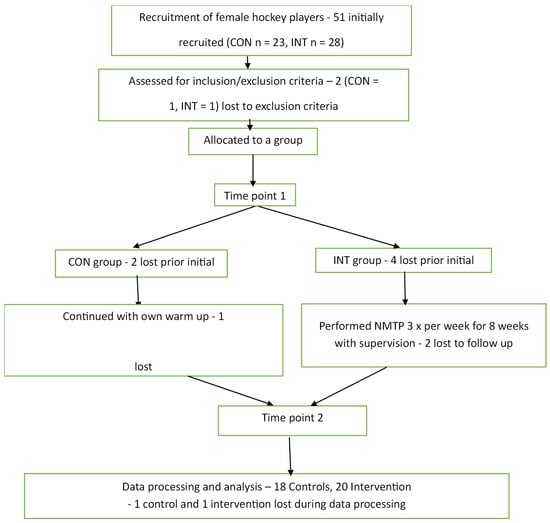 - Barboza, S.D.; Nauta, J.; Emery, C.; van Mechelen, W.; Gouttebarge, V.; Verhagen, E. A Warm-Up Program to Reduce Injuries in Youth Field Hockey Players: A Quasi-Experiment. J. Athl. Train. 2019, 54, 374–383. [Google Scholar] [CrossRef]