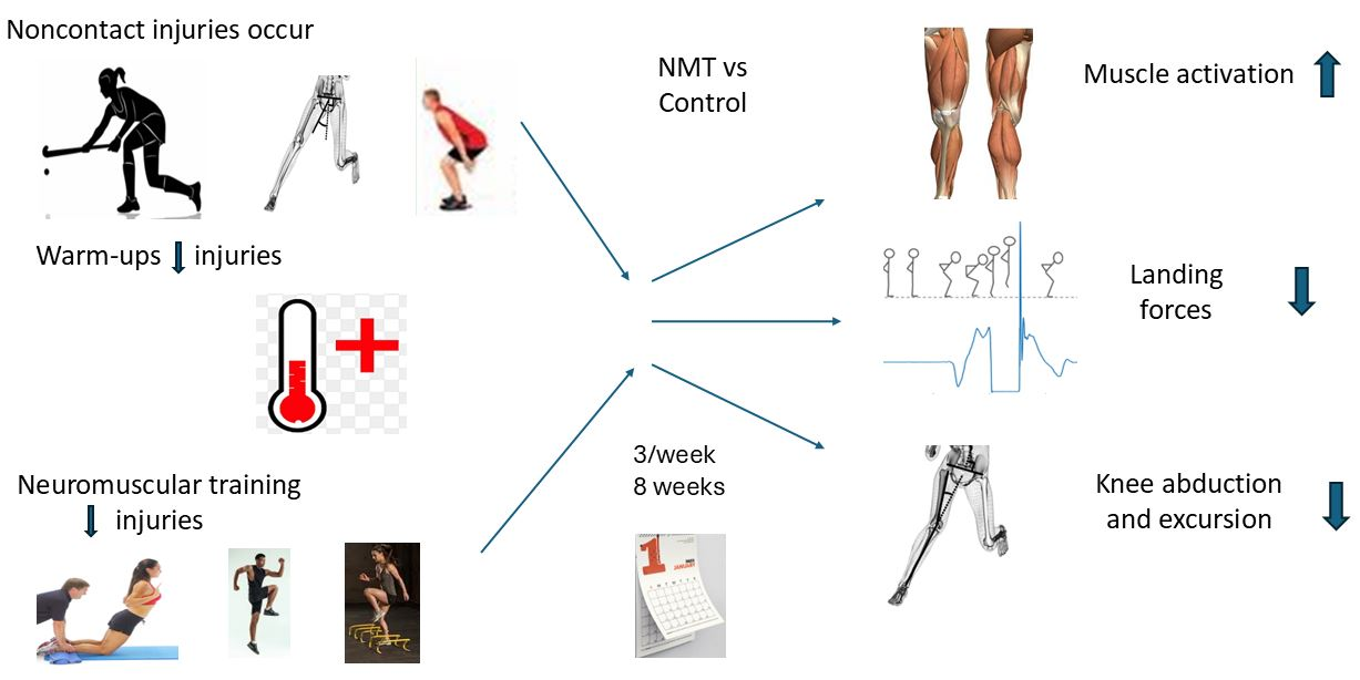 The study sought to explore how a NMTP could improve the movement skills of female hockey players. According to the hypothesis, neuromuscular training could potentially increase the activation profile in lower limb muscles, which could lead into more controlled movements and subsequently the players to be subjected in lower risk of non-contact injuries.