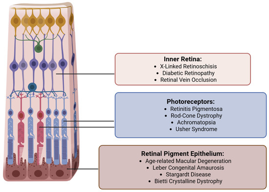 Figure 2. Select retinal diseases and accompanying gene therapy targets.