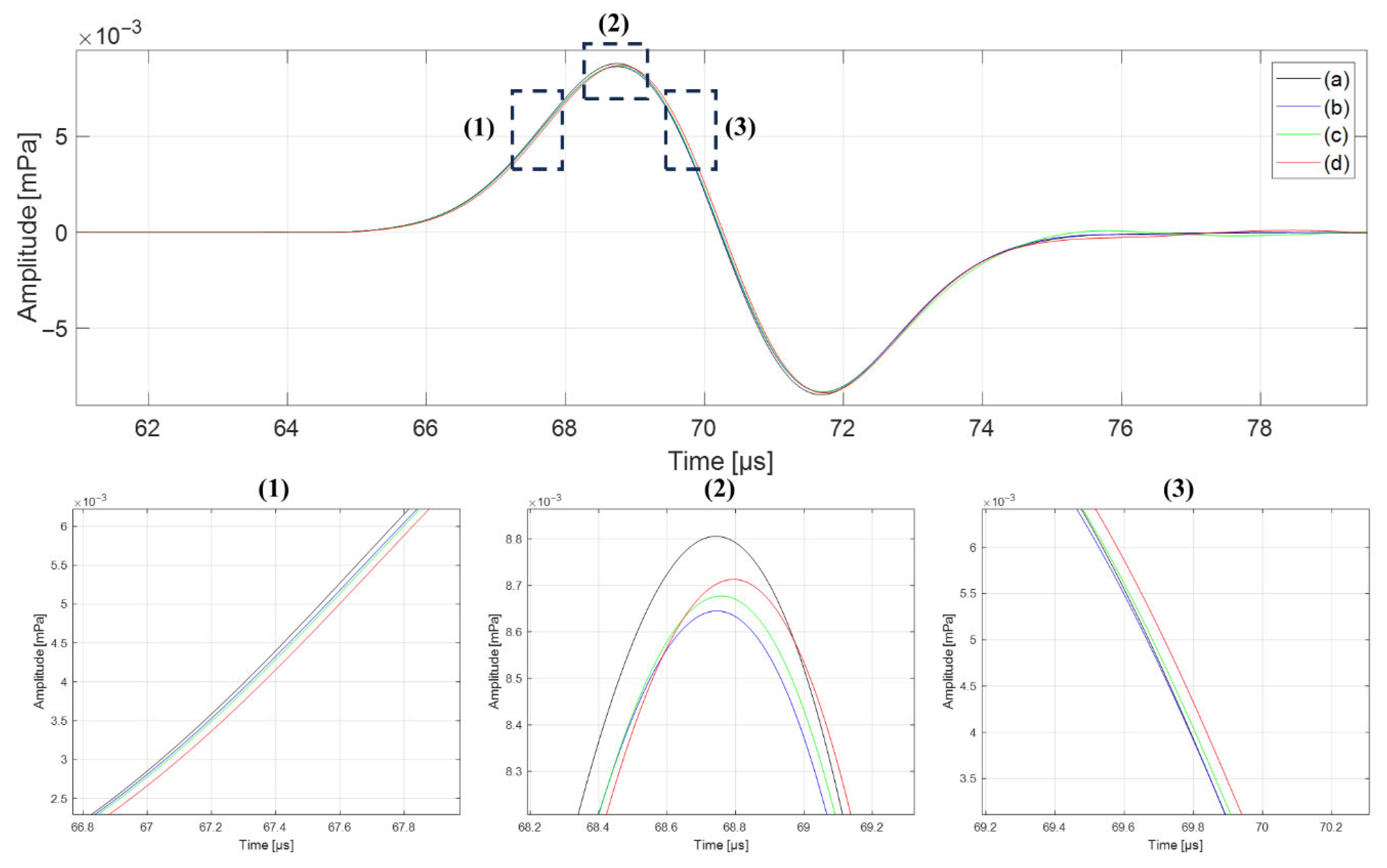 - Treeby, B.E.; Cox, B.T. k-Wave: MATLAB toolbox for the simulation and reconstruction of photoacoustic wave fields. J. Biomed. Opt. 2010, 15, 021314. [Google Scholar] [CrossRef] [PubMed]