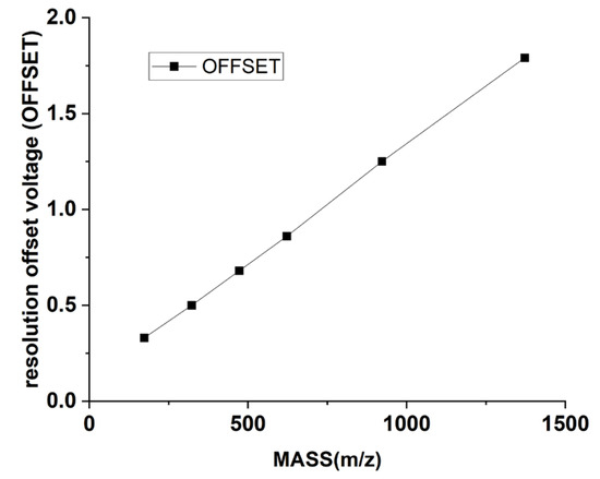 Correspondence of mass to resolution offset voltage (OFFSET).
