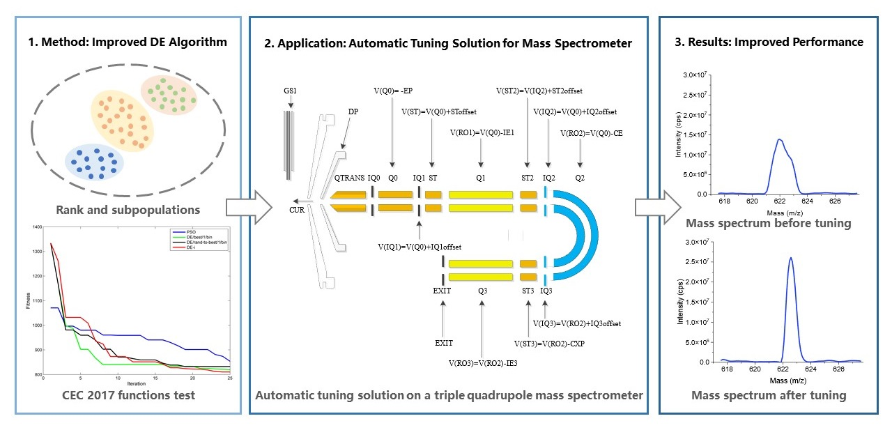 Zhang, Y.; Xiong, B.; Feng, L.; Li, L.; Cheng, W.; Tang, Y. Automatic Tuning Method for Quadrupole Mass Spectrometer Based on Improved Differential Evolution Algorithm. Bioengineering 2025, 12, 1154. https://doi.org/10.3390/bioengineering12111154