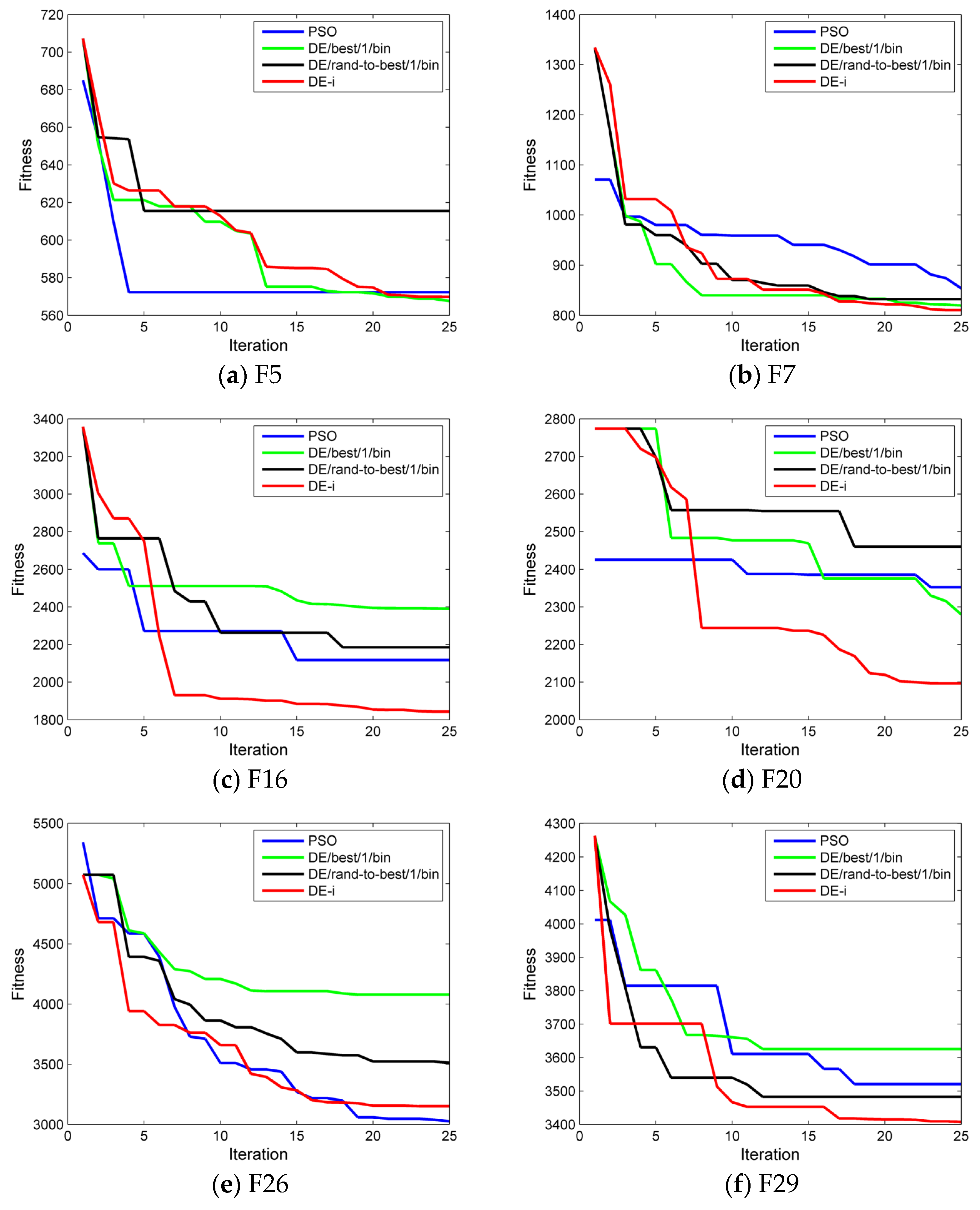 | Functions | - | PSO | DE/Best/1/Bin | DE/Rand-to-Best/1/Bin | DE-i |